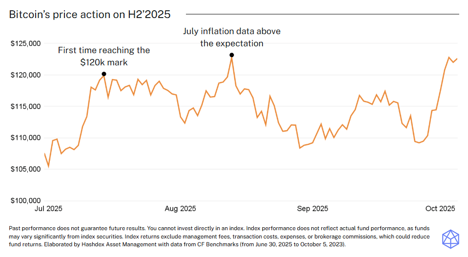 September marked the third consecutive month of sideways movement for Bitcoin since its all-time high on July 14. As we enter October, Bitcoin has once again crossed the $120,000 mark—its third time this semester. But this time, the backdrop feels different.