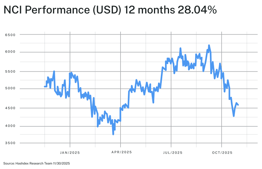 For investors with conviction in crypto's long-term potential, November's drawdown—while painful—occurs within an asset class that has recovered from far worse. The NCI's market cap-weighted methodology provided meaningful protection during the decline and positions investors to participate in eventual recovery without requiring perfect timing. Patient capital rarely regrets staying the course during capitulation events.