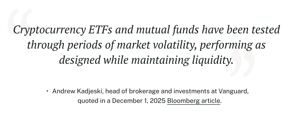 This trend of adoption will be a key factor driving performance in the new year, which we cover in our recently released 2026 Crypto Investment Outlook.
